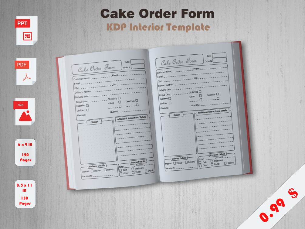 Download “Cake order Form” instantly with PDF Ready to upload on KDP with PowerPoint source files for customization.